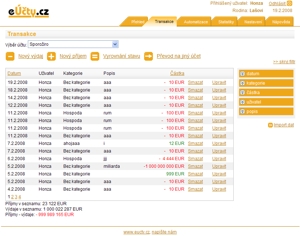Na stránce seznamu transakcí naleznete přehled všech transakcí pro vybraný účet. Nad tabulkou