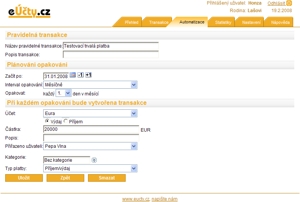 - Interval opakování - jak často se má transakce vkládat (ročně, měsíčně, týdně, denně).