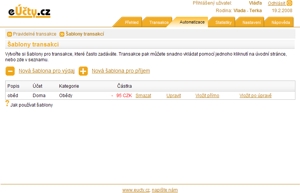 upravovat či smazat šablonu. Nad seznamem jsou volby pro vkládání nových šablon příjmu či výdaje.