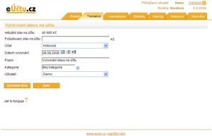 Tuto funkci použijte v případě, že zústatek na některém účtu je odlišný skutečnosti a Vy již nemáte
