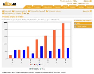 V tomto přehledu můžete nalézt graf týkající se konkrétního automobilu. V grafu jsou vidět najeté kilometry