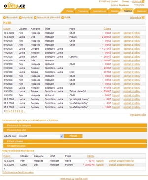 transakce upravovat (obdobně jako ze seznamu transakcí) nebo z košíku odstranit.