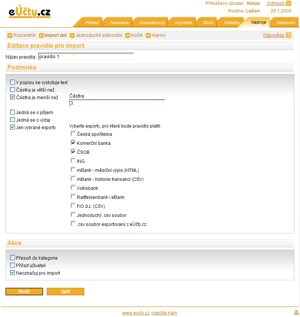 pravidlo aplikováno na všechny importované transakce). Při zadání více akcí budou aplikovány na pravidlo