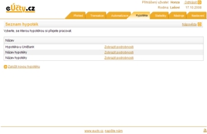 konkrétní hypotéky. Pro vytvoření nové hypotéky použijte volbu založit novou hypotéku